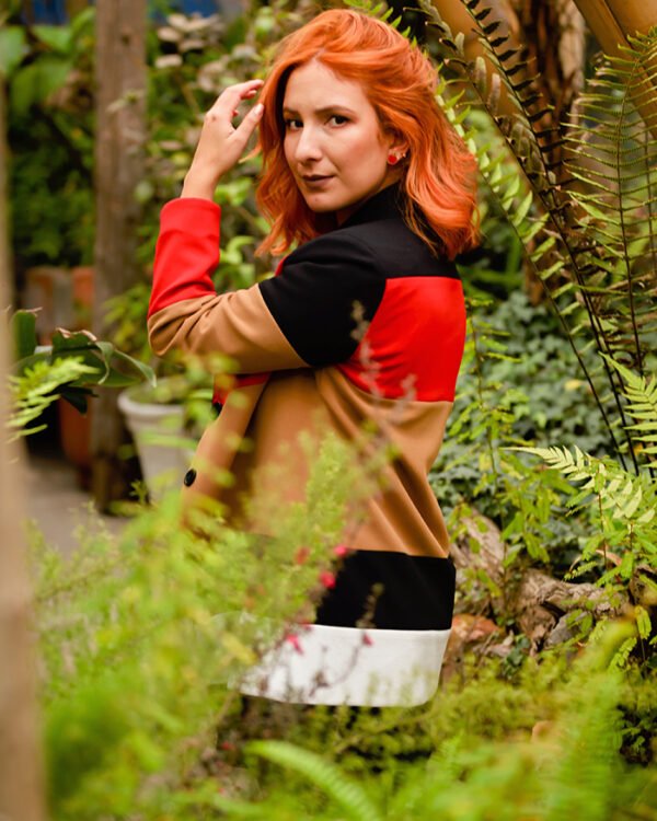 Abrigo hasta el muslo compuesto por bloques asímetircos en una combinación perfecta de color. Interior forrado, bolsillos laterales funcionales, sistema de cierre con botones. Material en paño liviano.