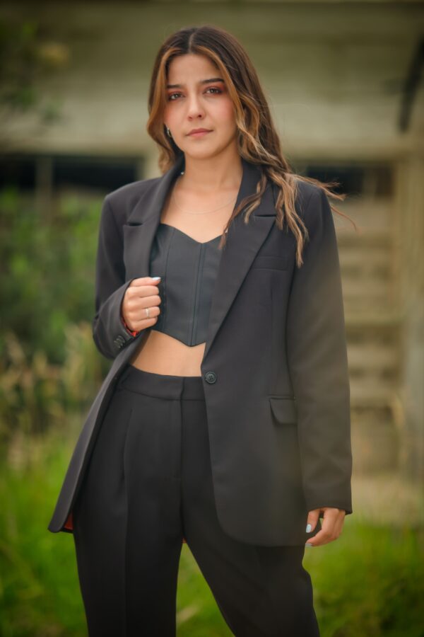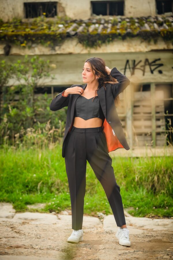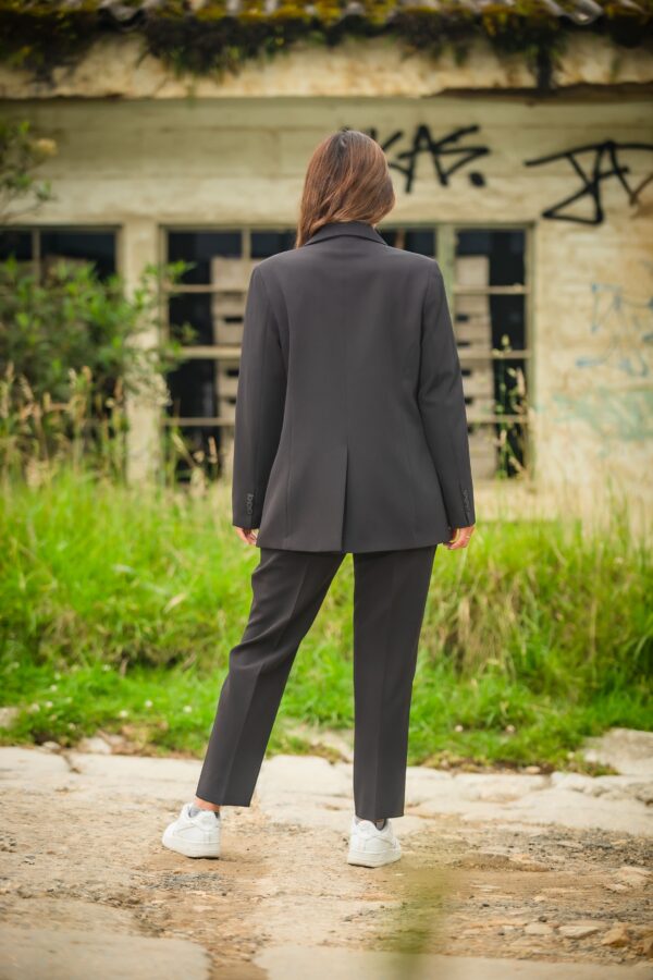 Conjunto sastre de 2 piezas: Blazer con interior forrado en contraste, cuello solapa, corte recto, abertura y bolsillos funcionales. Pantalón de prenses, bolsillos funcionales laterales, ribetes traseros. Silueta ancha y descomplicada, perfecto para combinar según la ocasión: con tenis, tacones, botas. Tela 100% Pol. Divino.