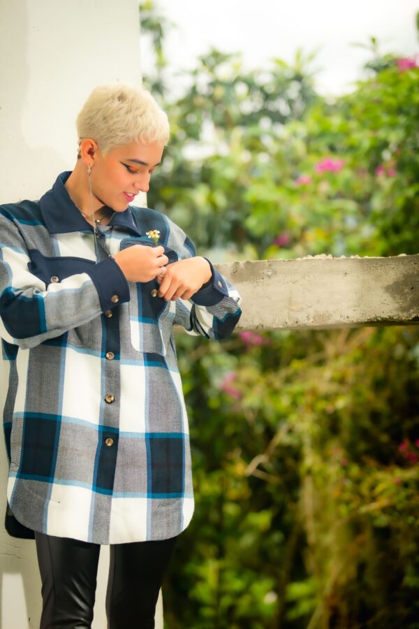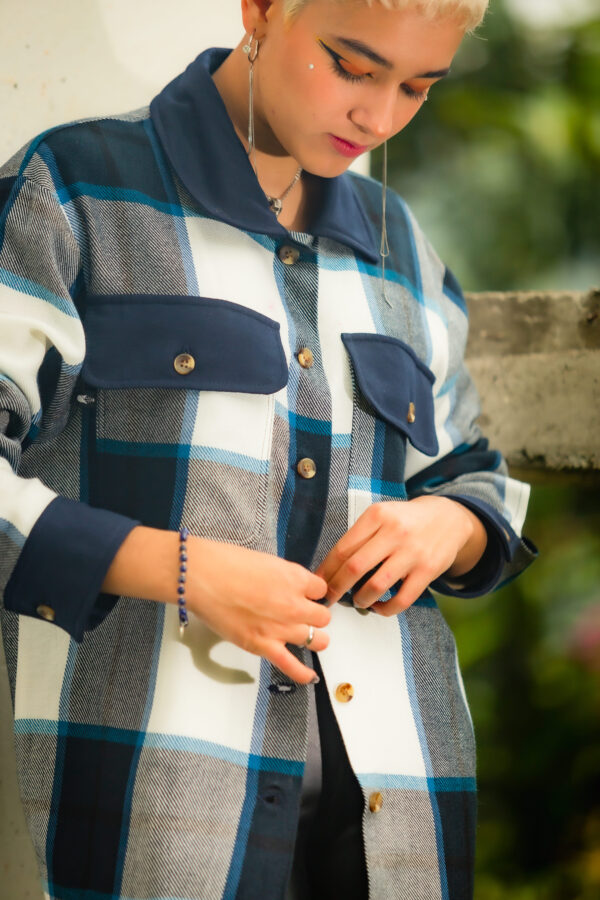 La CHAQUETA QUENDAL de Mazorca está disponible en cuadros escoceses en color azul y mostaza. Los bolsillos del frente son funcionales. Su largo y peso permite que la utilices abierta como ultima capa, o incluso puedes lucirla como un vestido estilizando con un cinturón.